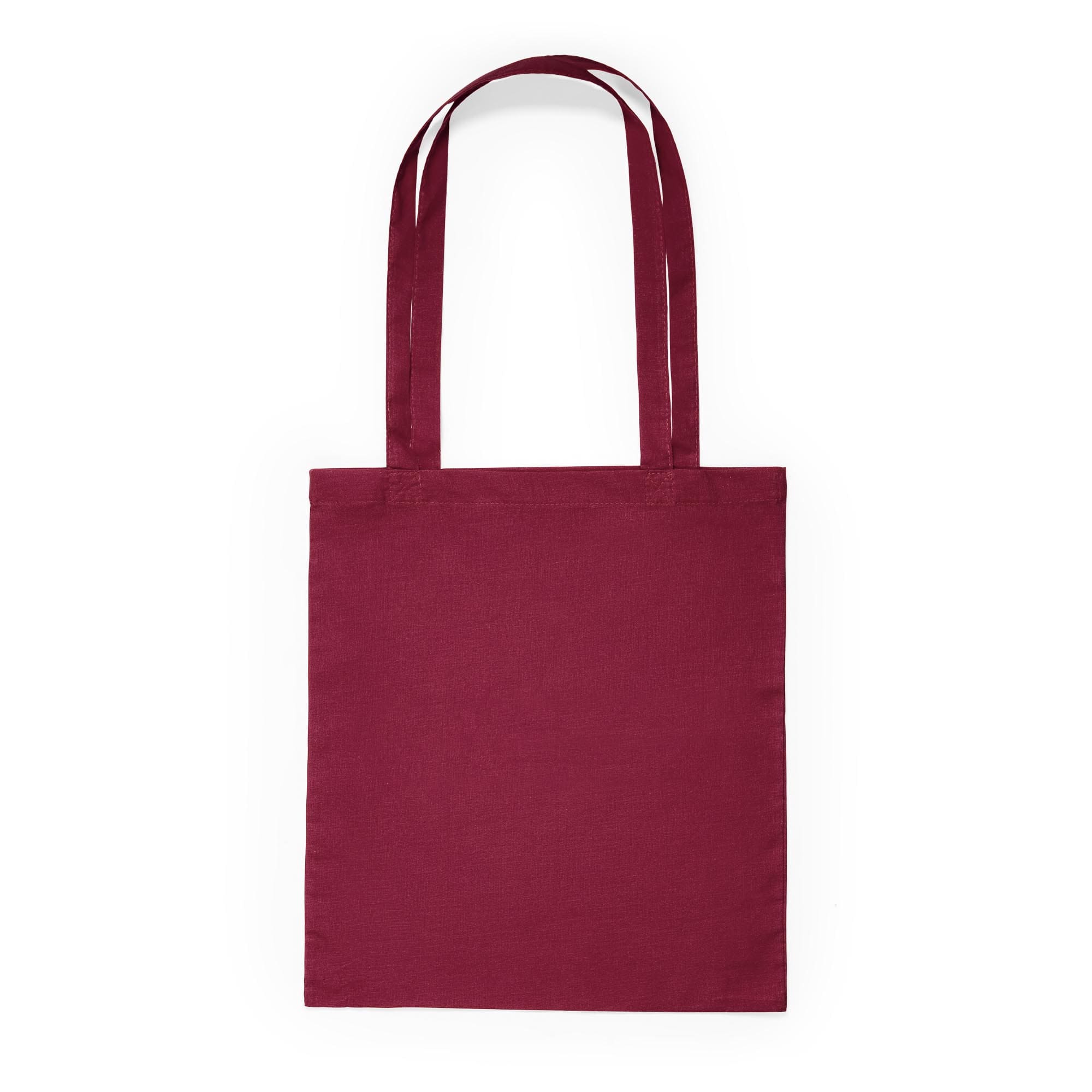 Bolsa fabricada en tejido de algodón en color, con asa larga de cinta en el mismo color.