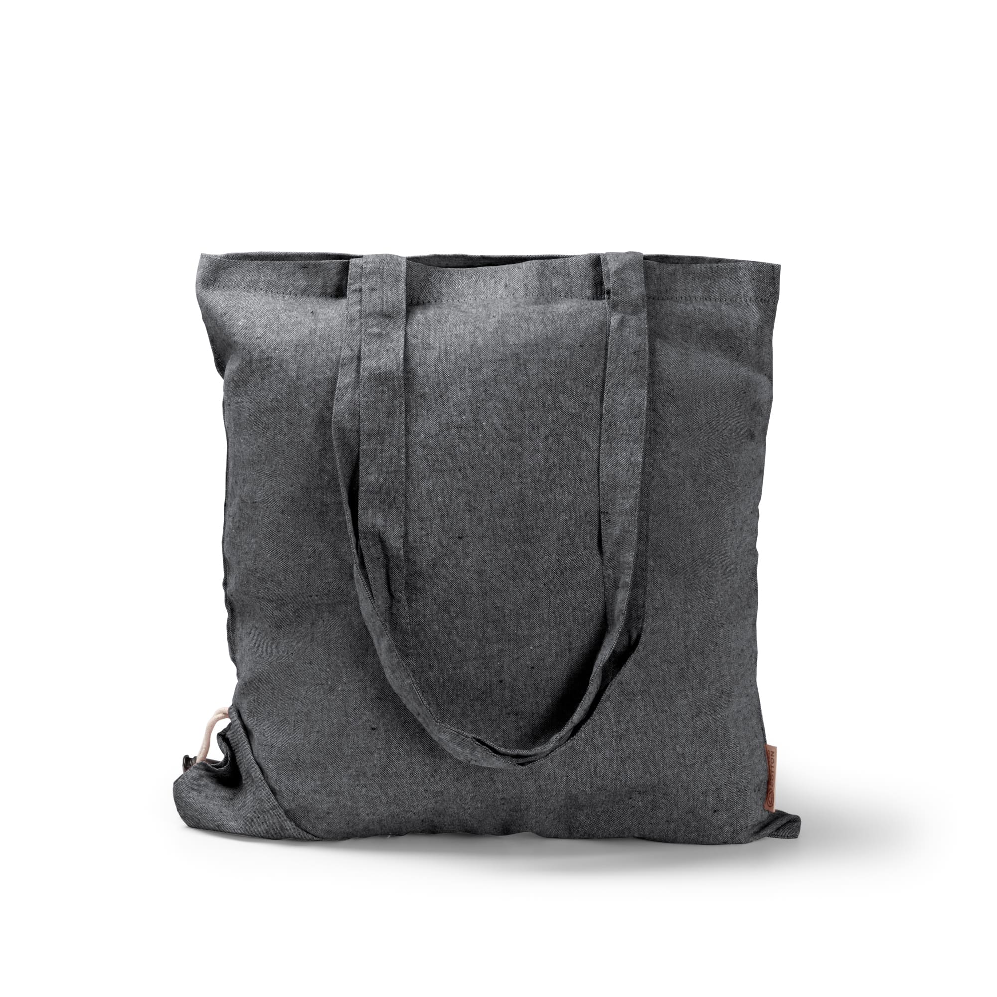 Bolsa plegable de algodón reciclado 120 g/m² a color, asas largas de 70 cm y cordón para plegado ajustable.