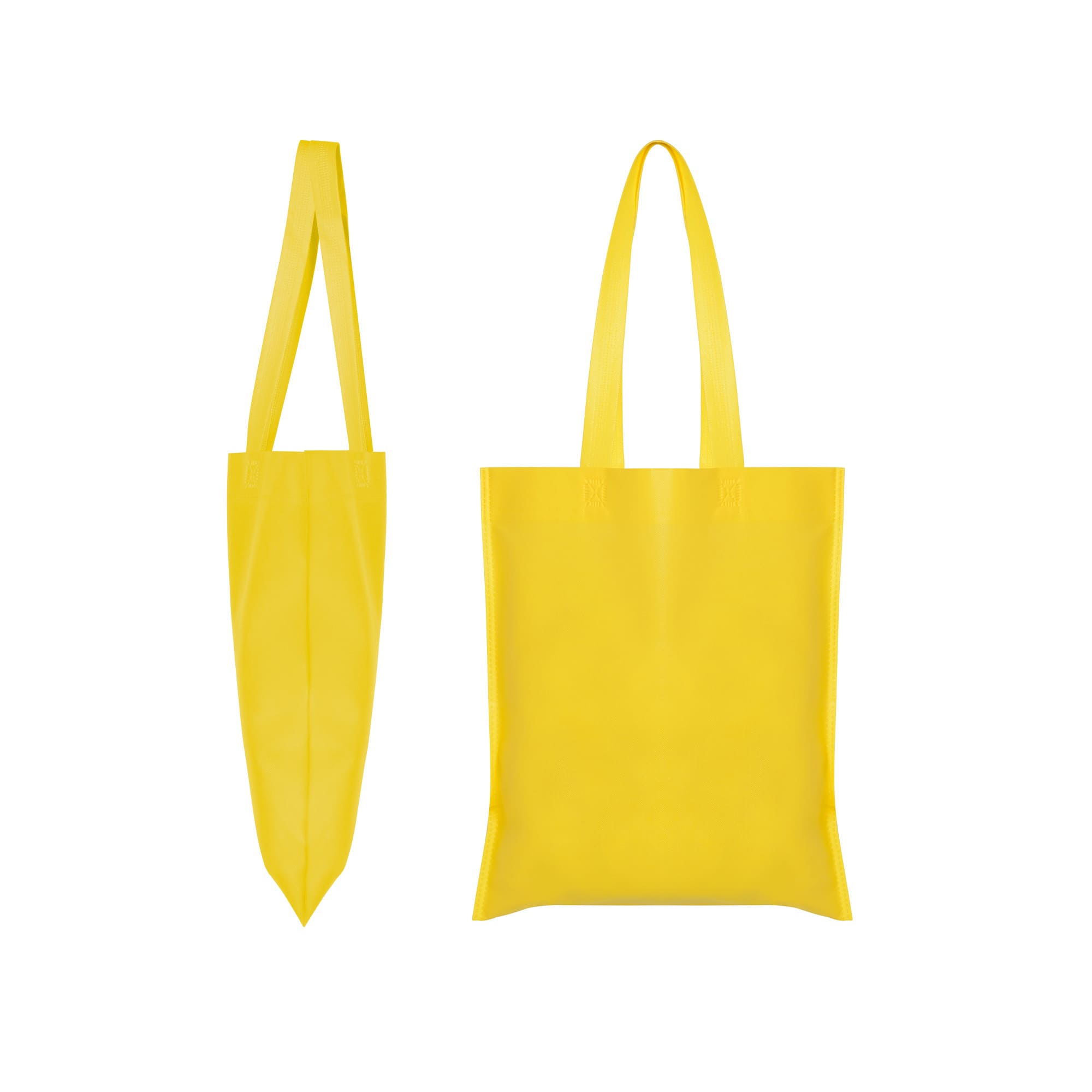 Bolsa termosellada sin fuelle, fabricada en tejido non-woven (no tejido), con asa larga de 70cm cinta en el mismo color. Resistencia hasta 6kg de peso.