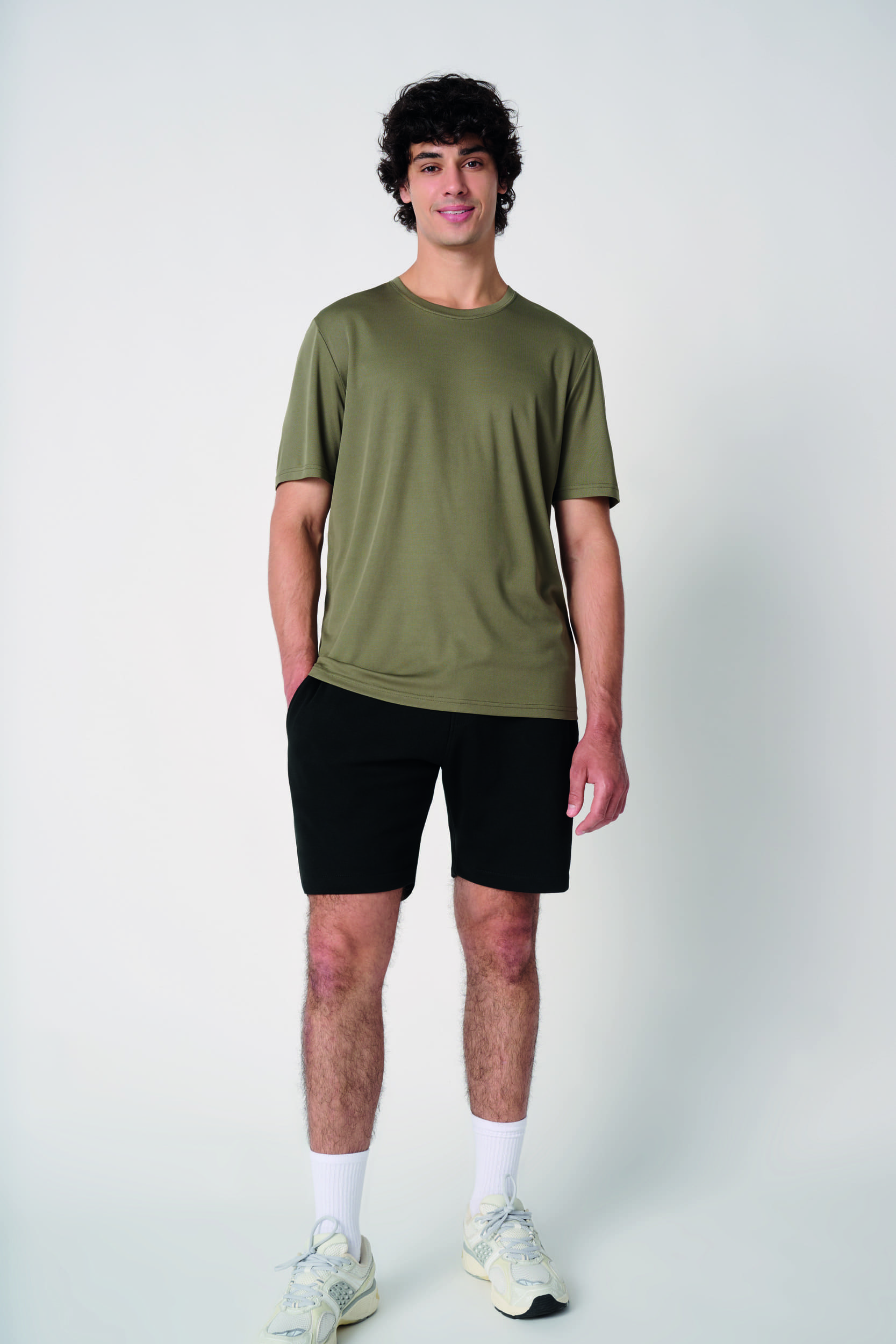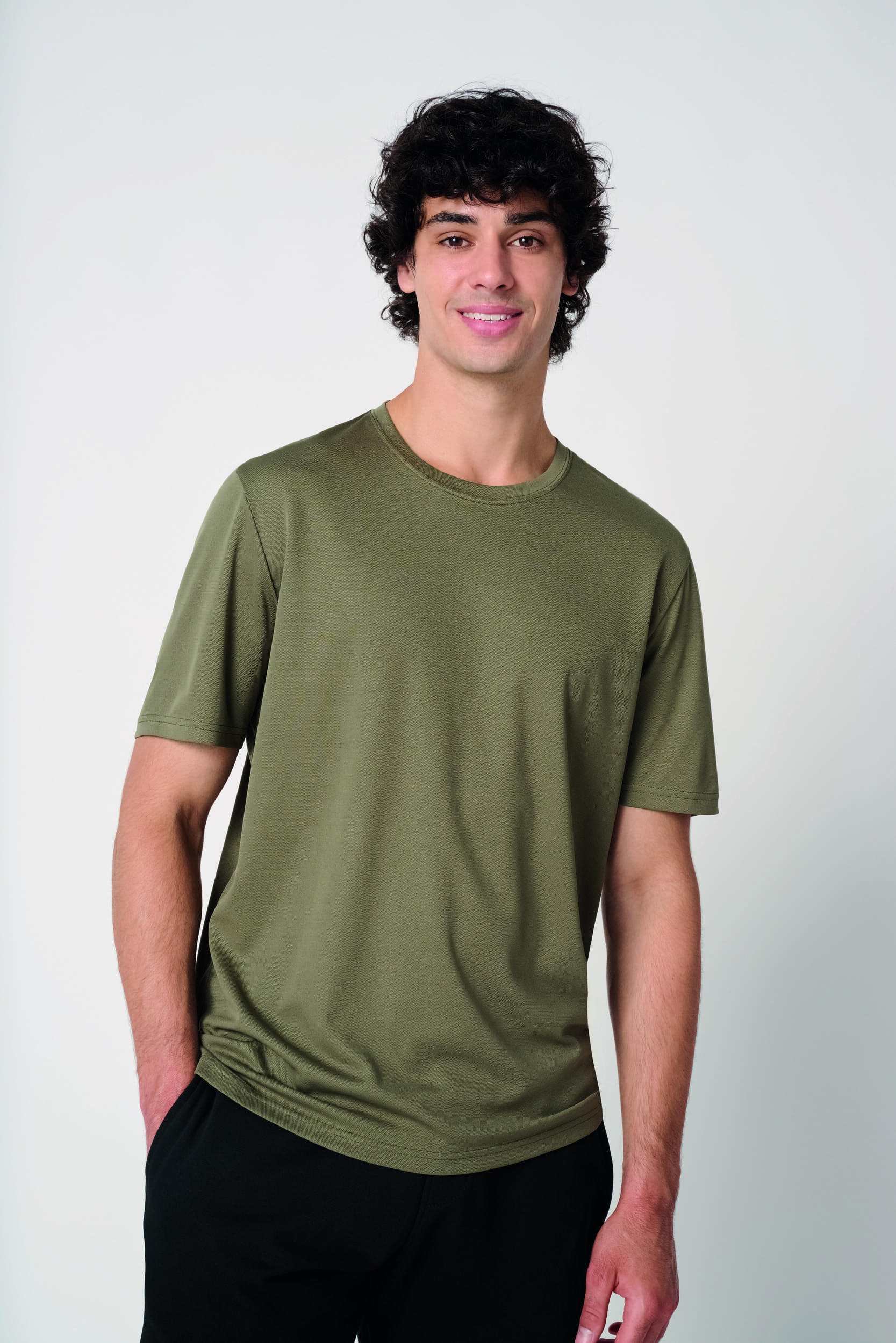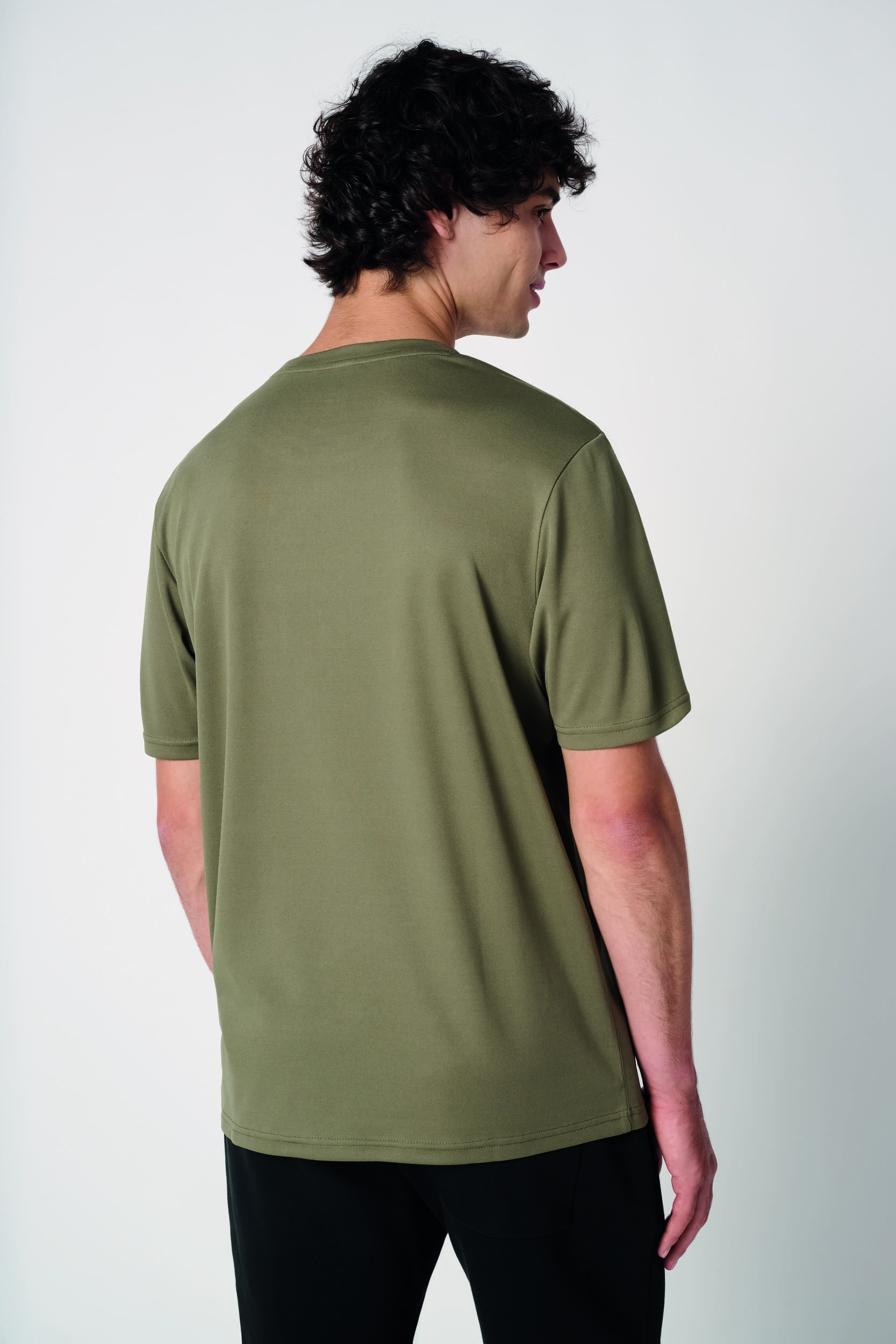100% poliéster. Tejido piqué transpirable. Tejido ligero y de secado rápido. Corte recto. Cuello redondo de tejido piqué transpirable con doble pespunte. Tira cubrecosturas en el interior del cuello a tono. Bajo de las mangas y de la prenda con acabado de doble pespunte. Etiqueta de marca extraíble.