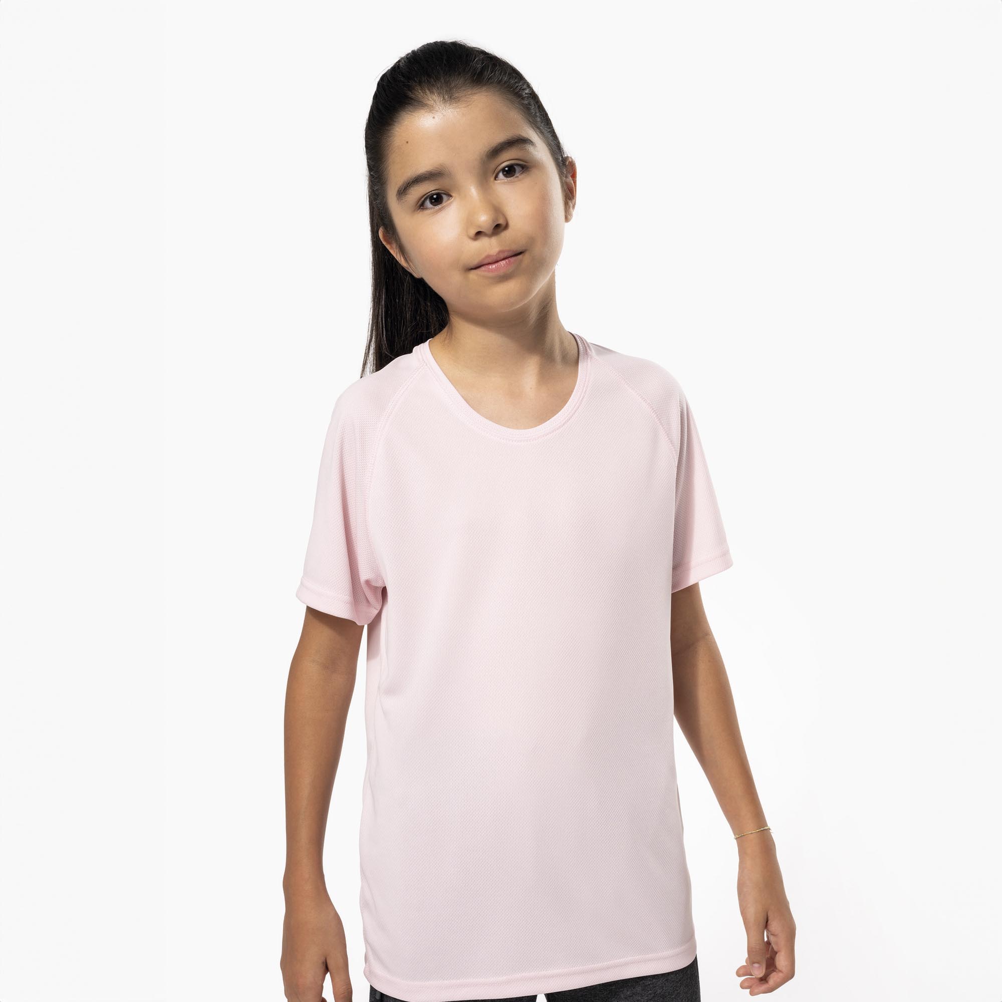 100% poliéster. Tejido ligero de secado rápido. Cuello redondo con tira cubrecosturas. Manga raglán con pespunte especial. Acabado con doble pespunte en cuello, bajo de mangas y de la prenda.