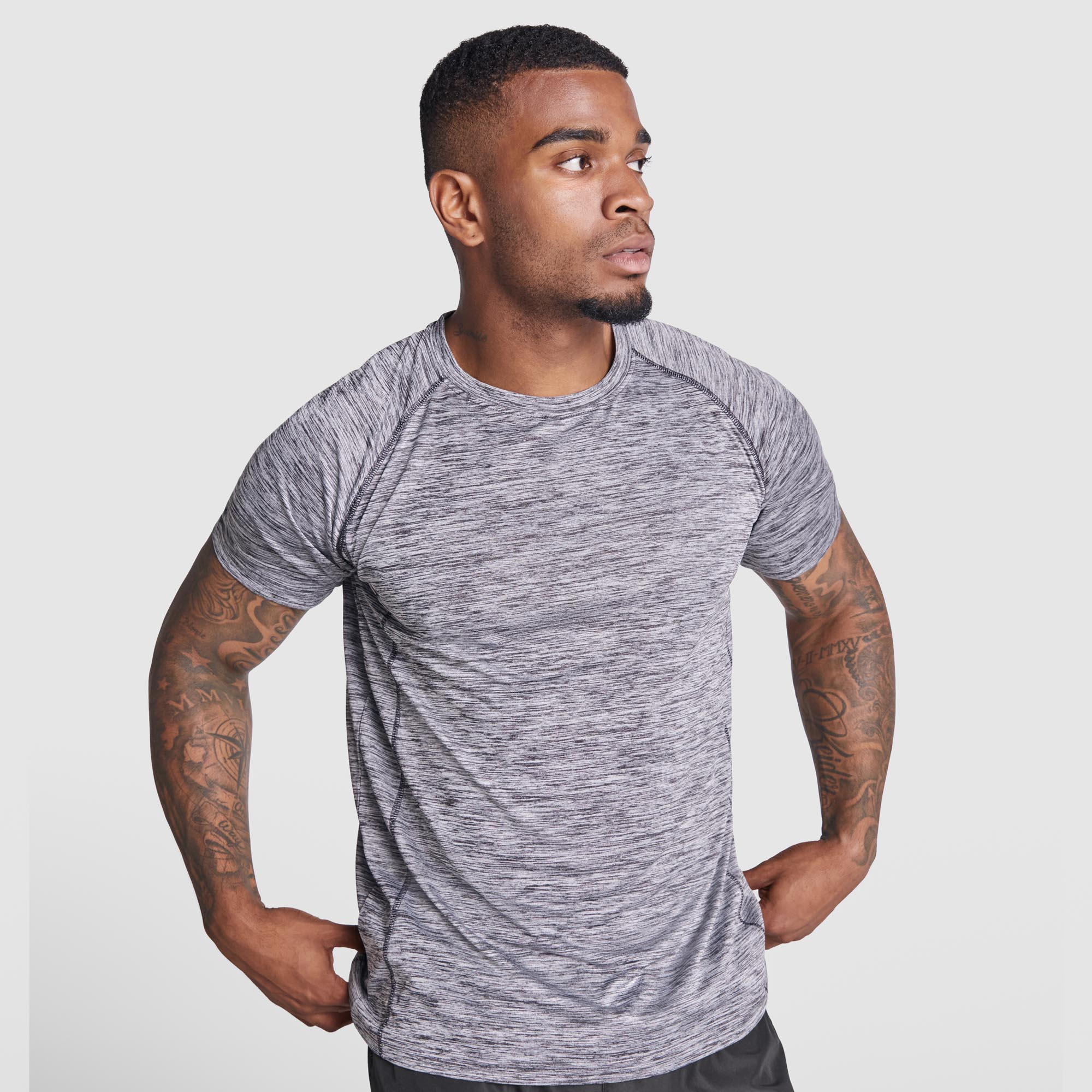 Camiseta técnica manga ranglan transpirable. Paneles laterales con costuras anti roce. Cuello redondo y cubrecosturas del mismo tejido al tono.