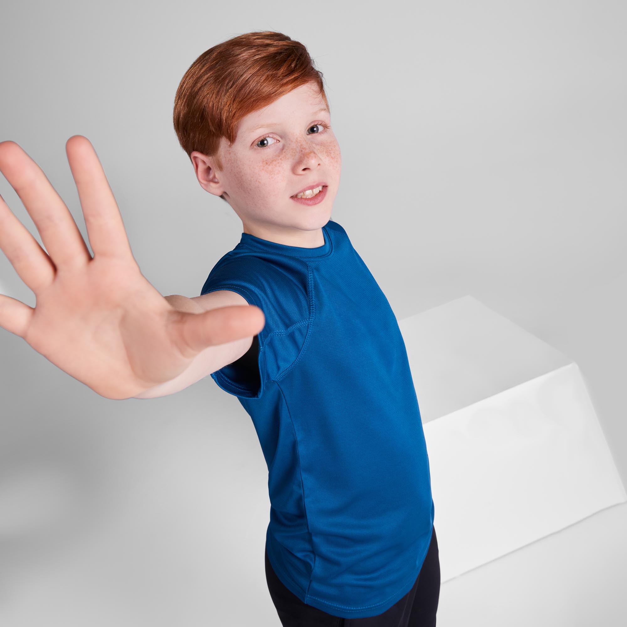 Camiseta técnica de niño manga ranglan transpirable. Roly Control Dry. Paneles en sisas. Cuello redondo y cubrecosturas del mismo tejido al tono (Certificado UV).