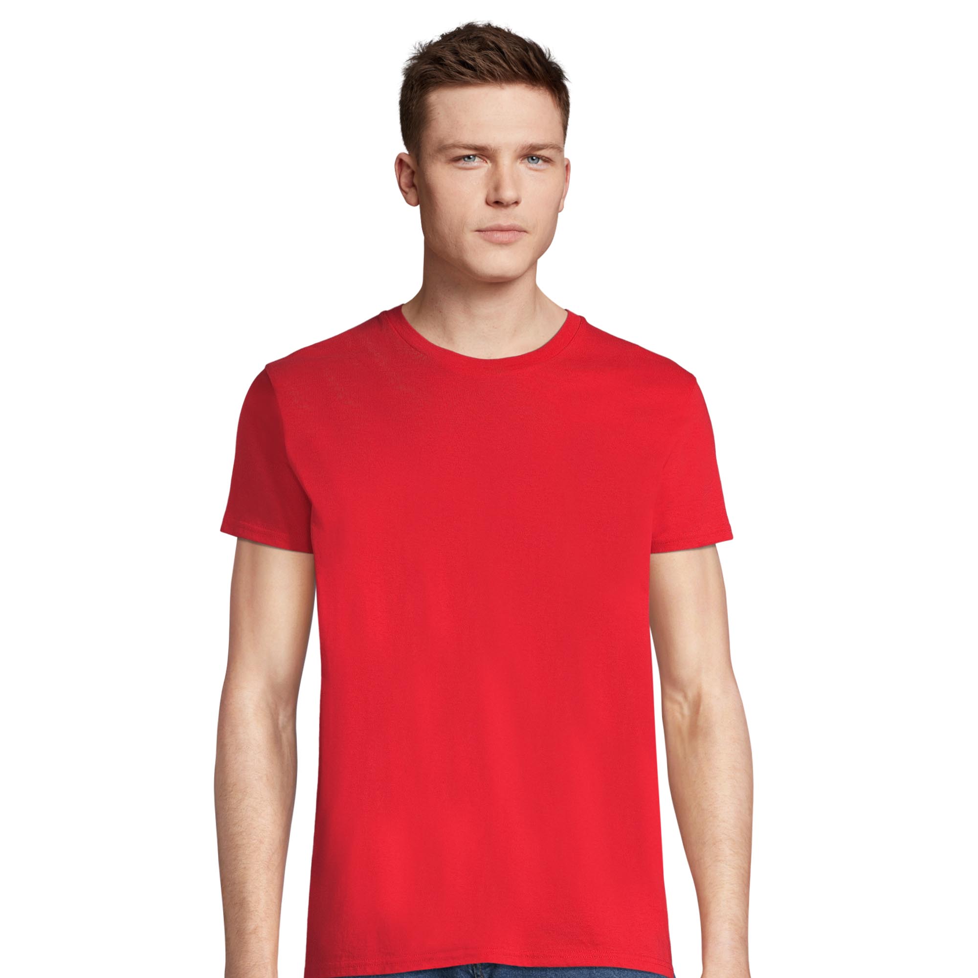 CAMISETA HOMBRE AJUSTADA DE PUNTO LISO Y CUELLO REDONDO 100% algodón biológico. Acabado natural para un tacto más suave y liso. 300 Ash: 98 % Algodón orgánico / 2 % viscosa. 350 Gris mezcla: 85 % Algodón orgánico / 15 % viscosa