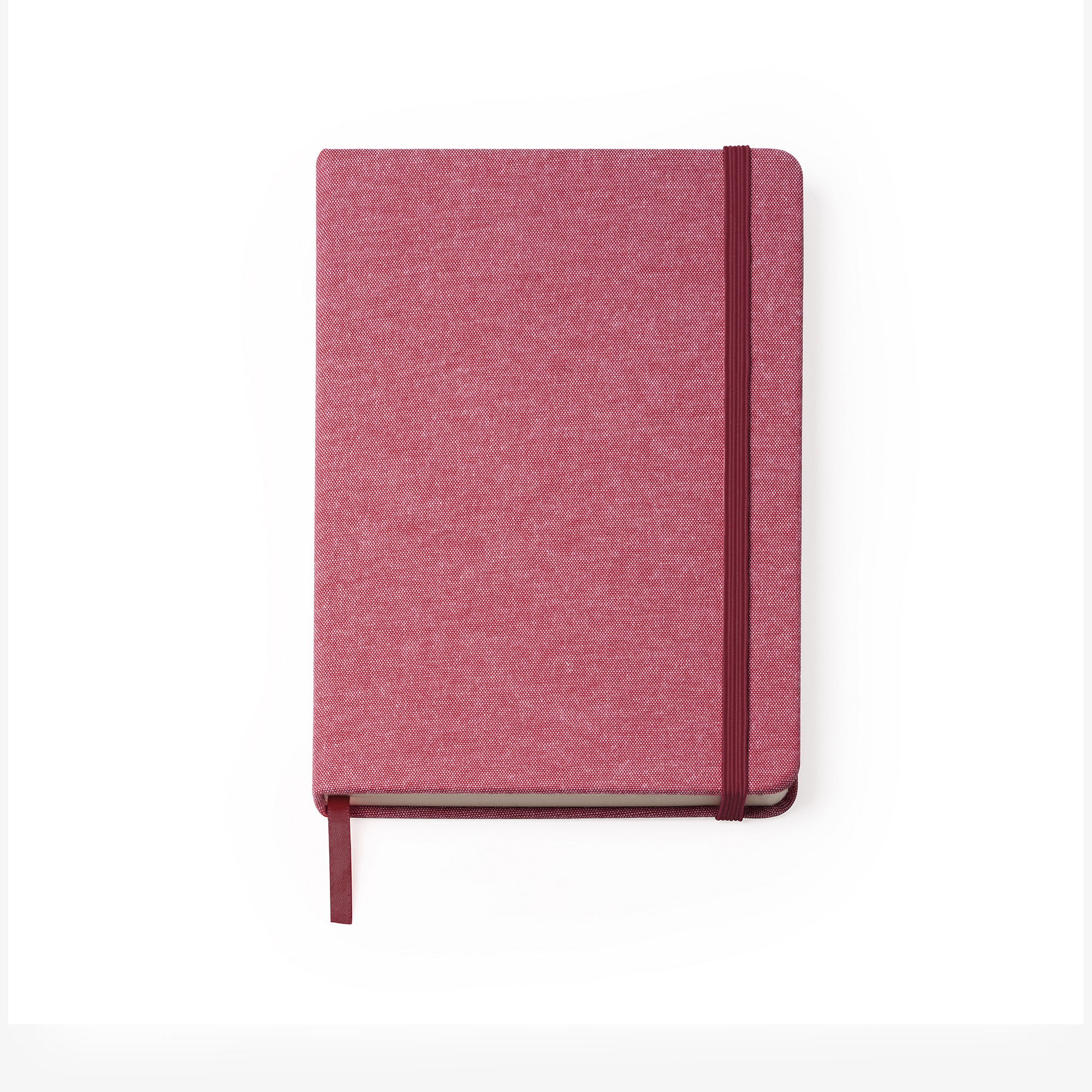 Bloc de notas A5 con tapas en algodón reciclado. Marcapáginas y banda elástica. 100 hojas lisas.