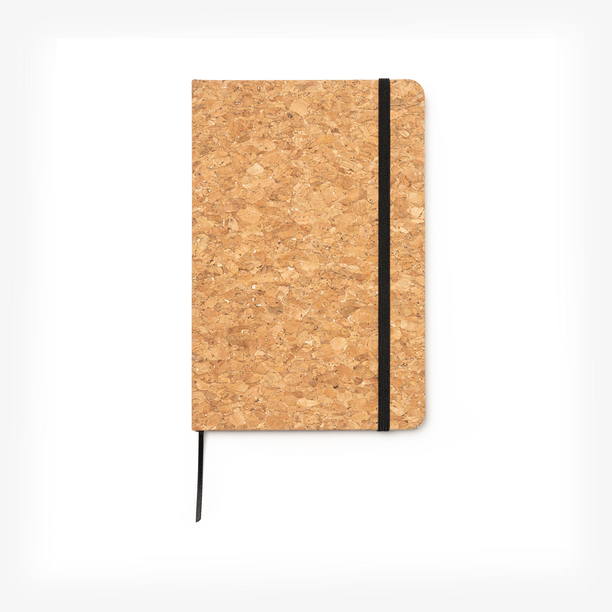 Bloc de notas A5 con tapa rígida de corcho natural. Marcapáginas y banda elástica de cierre. Cuenta con 80 hojas.