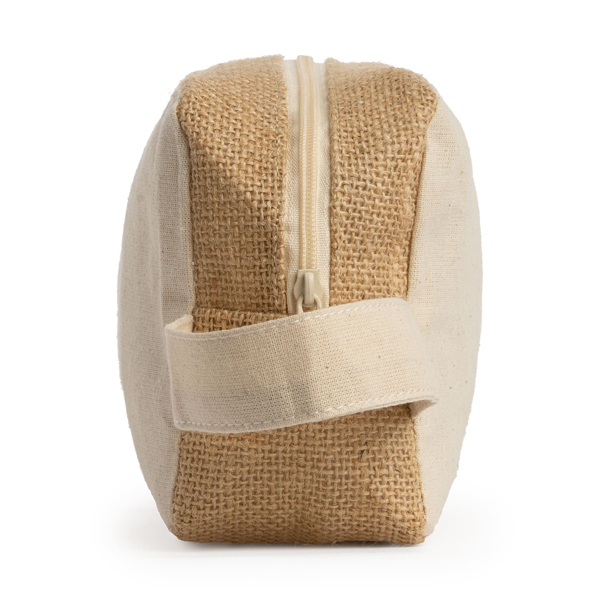 Neceser realizado en algodón y yute laminado. Cremallera con tirador de yute a juego.