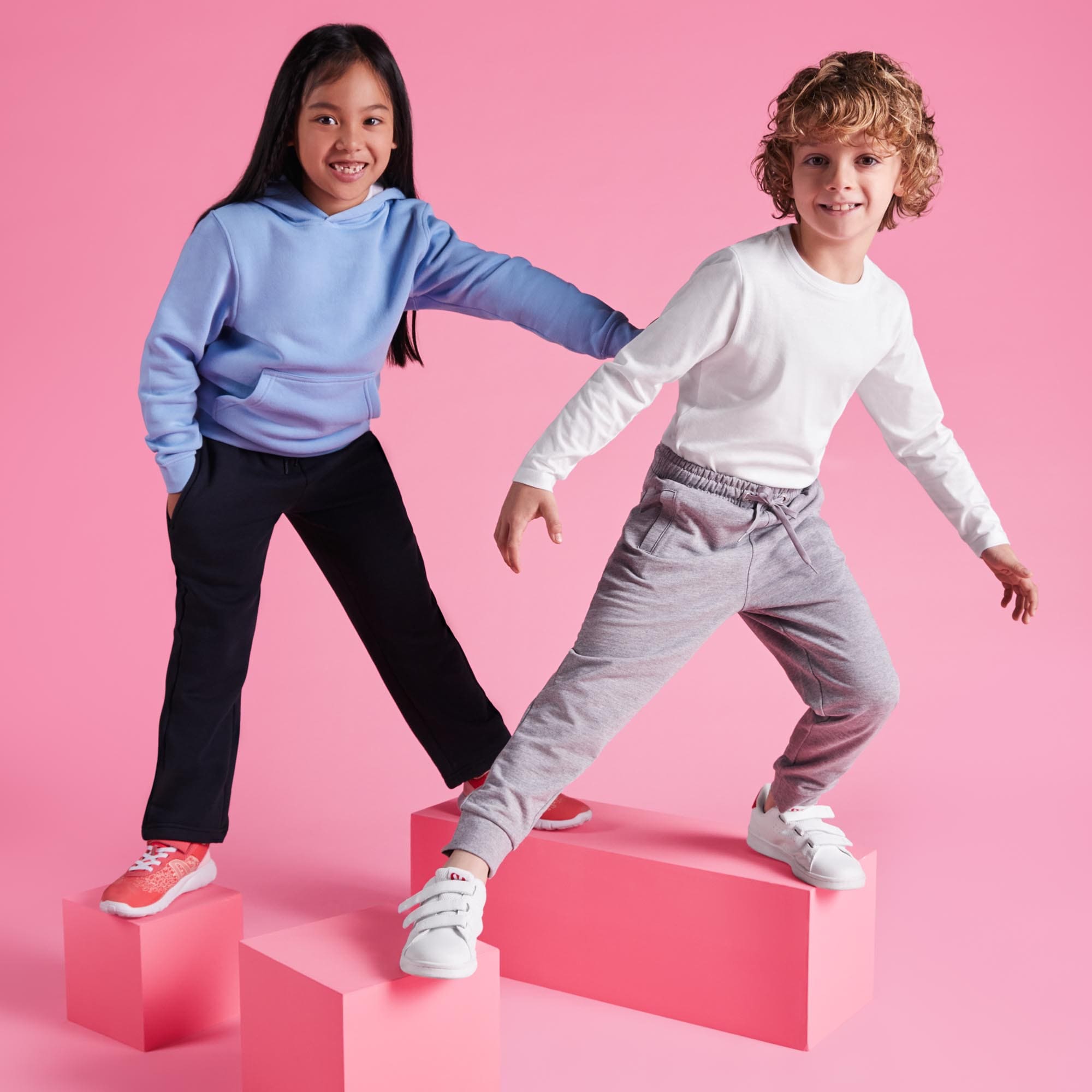 Pantalón largo recto de felpa no perchada básico para niño. Bolsillos laterales con cremallera en tallas de adulto. Cinturilla engomada con cordón ajustable y ojales metálicos. Bolsillo trasero con cierre de velcro. Puños en rib 1×1.