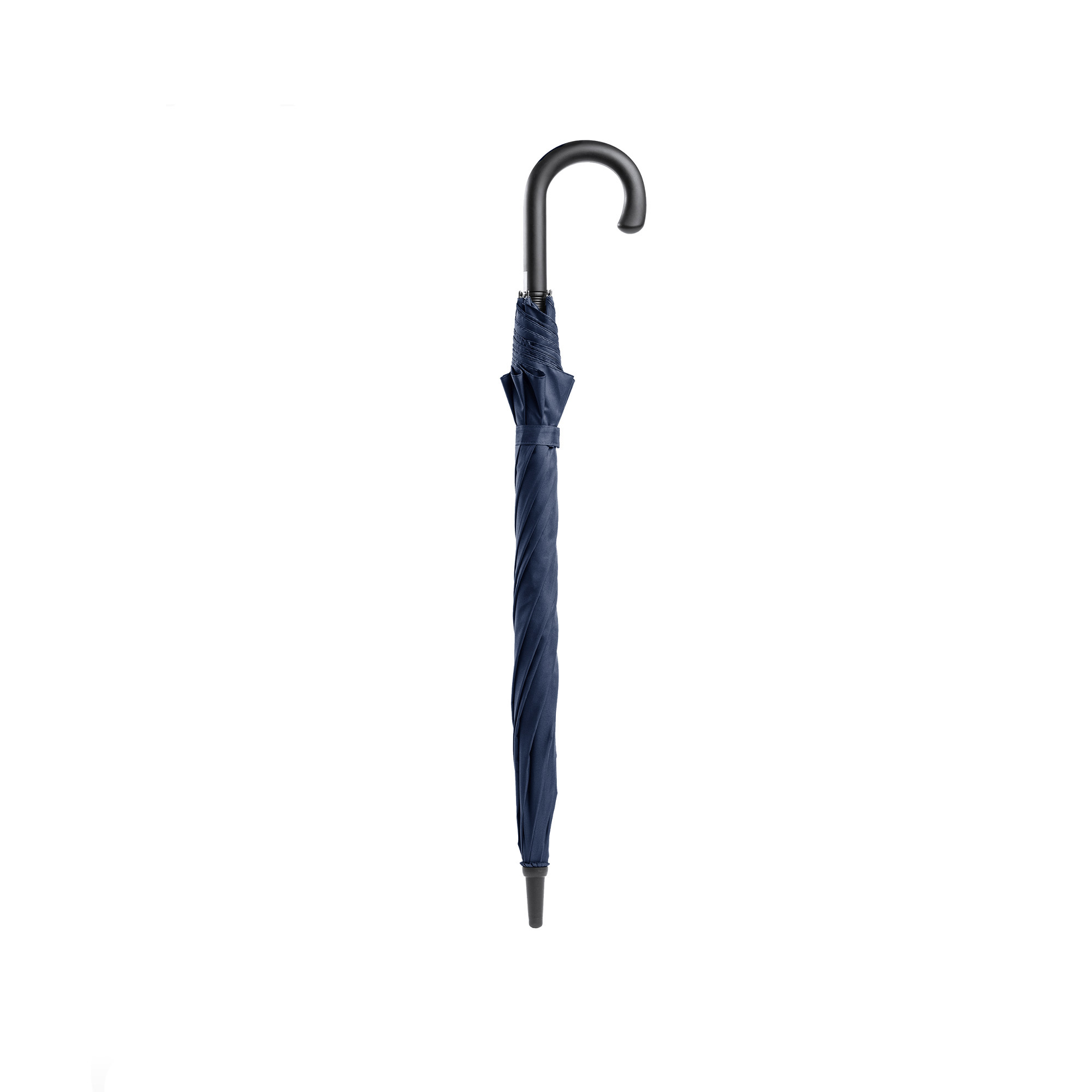 Paraguas realizado en tejido pongee 190T con mango en acabado suave. Apertura automática. Varillas de fibra de vidrio con sistema anti-viento y terminaciones reforzadas.