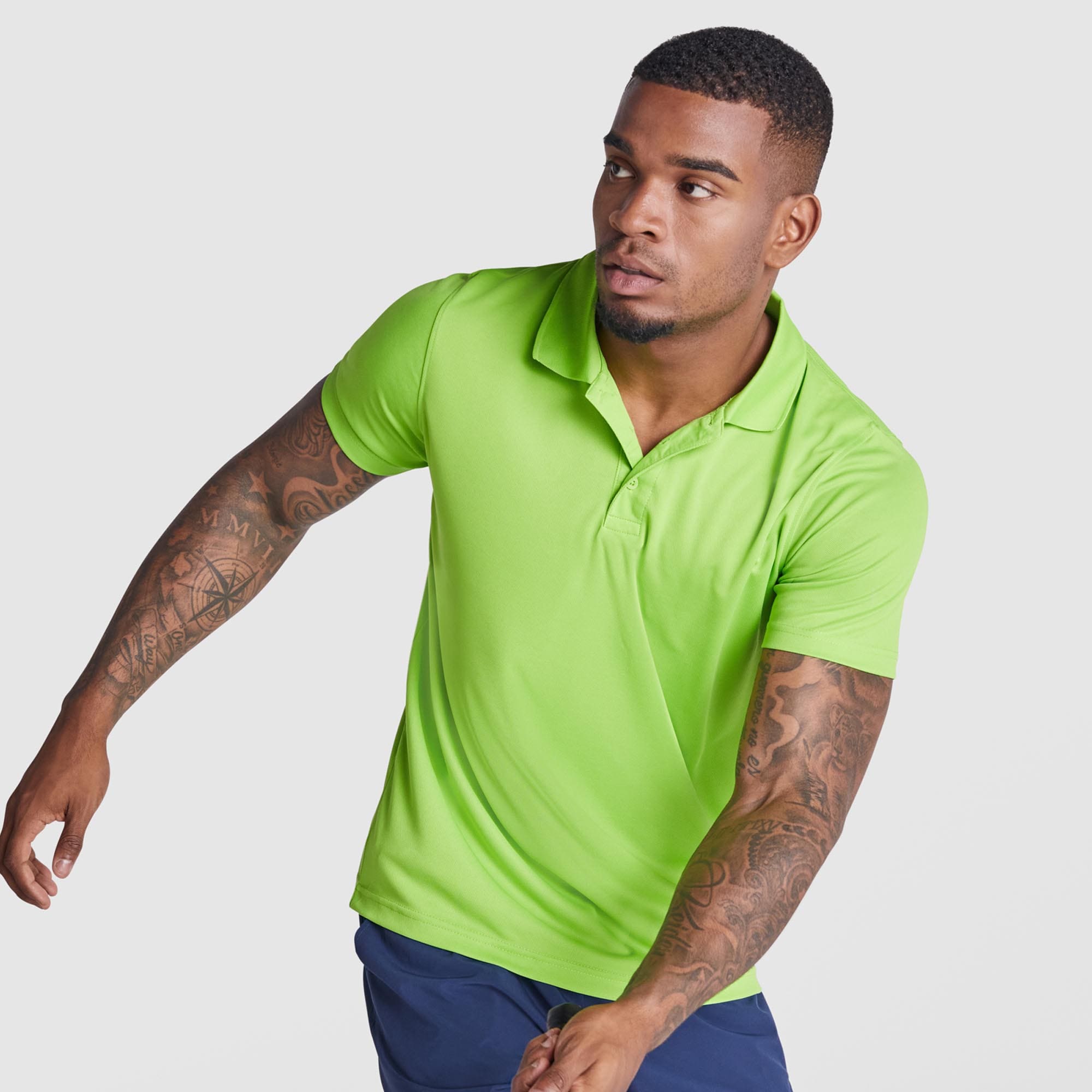 Polo técnico manga corta transpirable. Cuello rib 1×1 al tono. Tapeta con 3 botones. Cubrecosturas del mismo tejido al tono. Certificado UV.