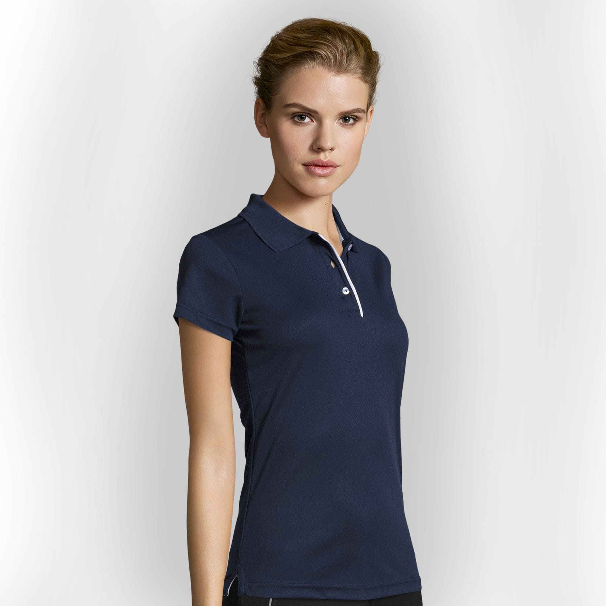 Manga corta. Tapa de 3 botones. Ribete de contraste en la tapeta, las aberturas laterales y la banda del escote. Apto para la sublimación