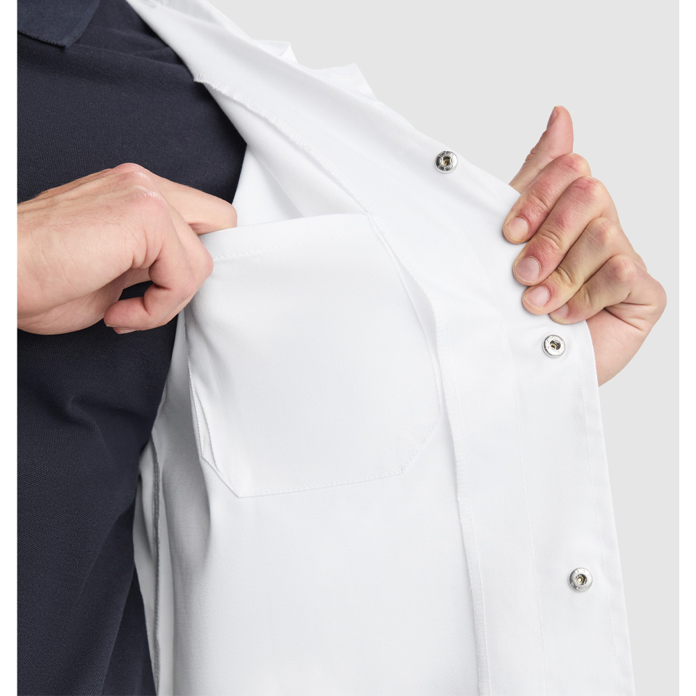 Bata versátil y ligera, perfecta para uso profesional en clínicas, laboratorios o estética.