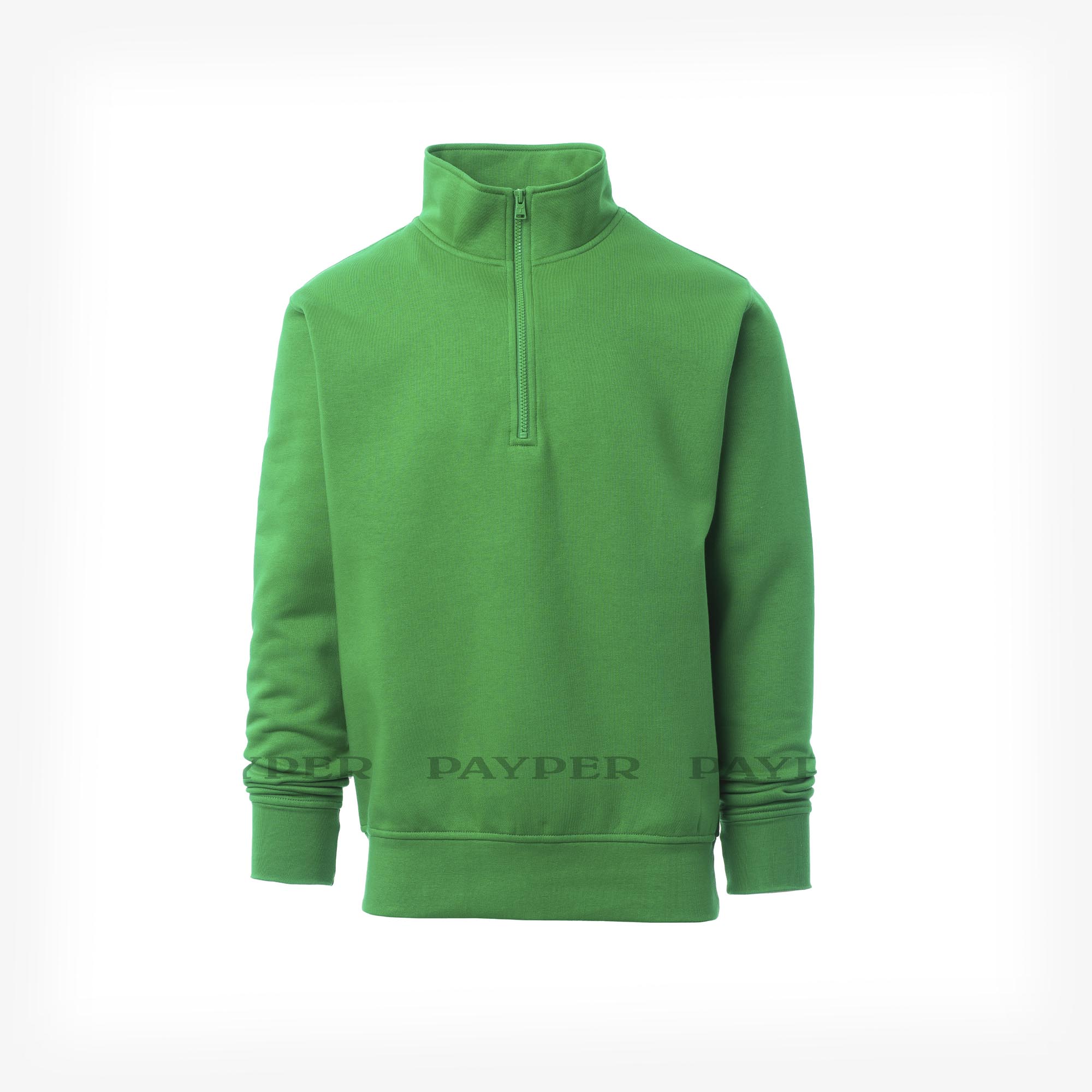 Sudadera para hombre, con media cremallera de plástico a juego y cursor metálico, manga simple, puños y cintura de canalé elástico, costuras reforzadas.