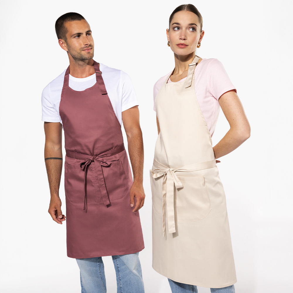 Delantal peto pol/alg. con bolsillos.